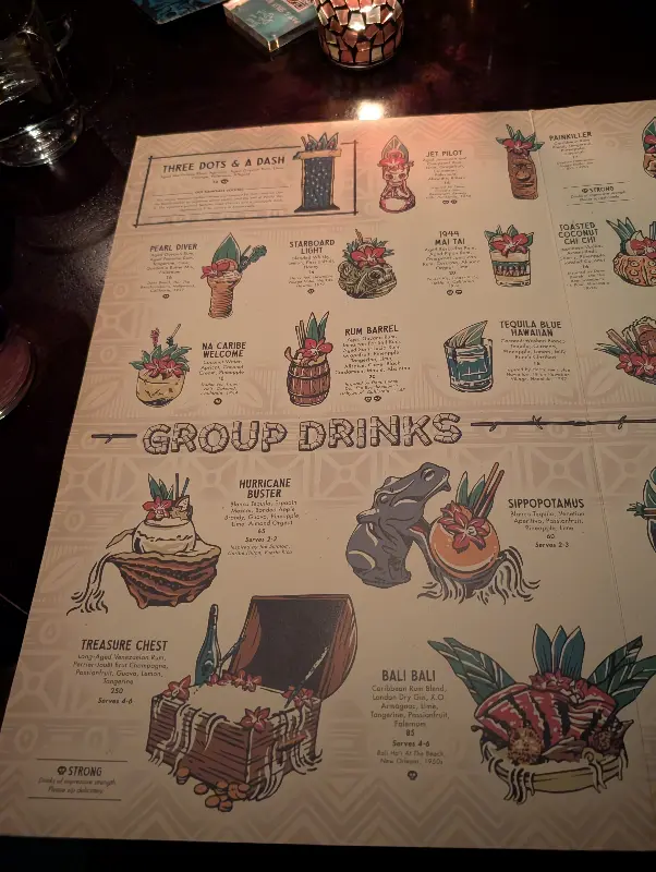 Three Dots and a Dash는 시카고에서 특별한 경험을 할 수 있는 곳이다. 이국적인 분위기, 독특한 칵테일, 친절한 서비스는 방문객들에게 잊지 못할 추억을 선사한다. 음악 소리와 칵테일의 단맛은 다소 아쉬웠지만, 전반적으로 만족스러운 경험이었다.