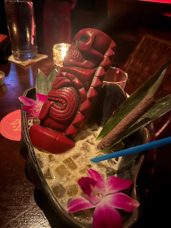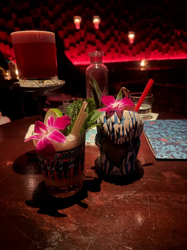 시카고의 북적이는 거리, 그 번잡함 속에서 잠시 벗어나 이국적인 세계로 떠나는 상상을 해본 적 있는가? 오늘, 나는 특별한 맛을 찾아 Three Dots and a Dash로 향한다. 골목길 어귀, 붉은 네온사인 간판이 마치 숨겨진 보물을 안내하는 듯하다. 문을 열고 들어서는 순간, 현실과는 다른 세계가 펼쳐진다. 폴리네시아 스타일로 꾸며진 공간은 은은한 조명과 독특한 소품들로 가득 차 있어, 마치 다른 차원에 발을 들인 듯한 느낌을 선사한다.