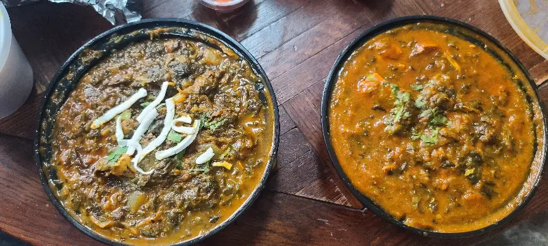 드디어 치킨 사그를 맛볼 차례. 부드러운 치킨과 신선한 시금치가 조화롭게 어우러진 치킨 사그는 입안 가득 깊은 풍미를 선사했습니다. 은은하게 퍼지는 향신료 향은 인도 음식 특유의 매력을 더했고, 밥과 함께 먹으니 든든함까지 느껴졌습니다. 특히, 갈릭 난에 치킨 사그를 듬뿍 올려 먹으니 그 맛은 더욱 환상적이었습니다. 바삭한 난의 식감과 부드러운 치킨 사그의 조화는 정말 훌륭했습니다.