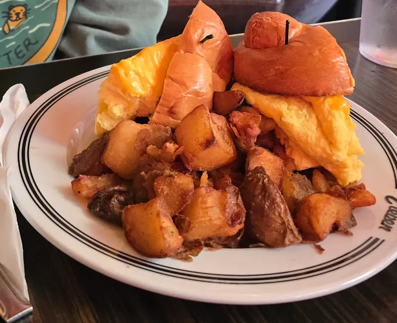 메뉴판을 펼쳐보니 오믈렛, 샌드위치, 팬케이크 등 다양한 브런치 메뉴들이 가득하다. 클래식한 미국식 아침 식사를 즐길 수 있다는 점이 매력적이다. 디저트와 주류 섹션도 훌륭하게 갖춰져 있어, 낮부터 칵테일 한 잔을 즐기는 여유도 만끽할 수 있다.