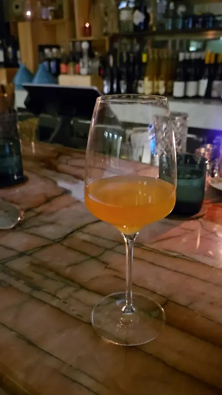 굿 펑크의 가장 큰 매력은 단연 와인 리스트였다. 전 세계 각지의 다양한 와인을 취급하고 있으며, 특히 스킨 컨택트 와인 셀렉션이 돋보였다. 평소 접하기 힘든 독특한 와인들이 많아서 와인 애호가들에게는 천국과도 같은 곳이었다. 메뉴를 펼쳐 들자, 처음 보는 와인 이름들이 가득했다. 어떤 와인을 골라야 할지 고민스러웠지만, 친절한 바텐더의 도움 덕분에 어렵지 않게 선택할 수 있었다.