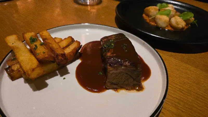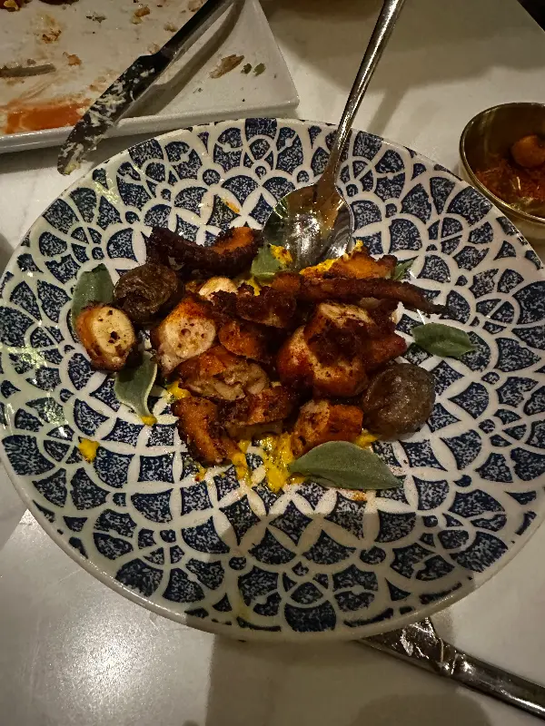 고민 끝에 코코넛 세비체, 따뜻한 문어 요리, 시저 샐러드를 주문했습니다. 코코넛 세비체는 코코넛 껍질에 반씩 담겨 나와 센스가 돋보였습니다. 신선한 해산물과 코코넛의 조화가 상큼하면서도 독특한 맛을 선사했습니다. 따뜻한 문어 요리는 쫄깃한 문어의 식감과 풍부한 향이 일품이었고, 시저 샐러드는 신선한 채소와 드레싱의 조화가 훌륭했습니다. 한 리뷰어는 “모든 음식이 맛있었어요. 특히 차가운 타파스 메뉴가 눈길을 사로잡았는데, 코코넛 세비체는 코코넛 껍질에 반씩 담겨 나와 센스가 돋보였고, 연어 크리스프, 하마치 콘, 해산물 플래터는 보기에도 좋고 맛도 훌륭했어요. 시저 샐러드도 최고였고, 따뜻한 문어 요리는 정말 맛있었어요.”라고 칭찬했습니다.