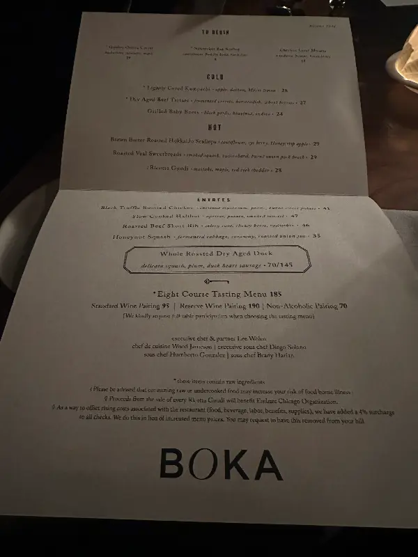 오랜만에 특별한 날을 기념하기 위해 시카고의 숨겨진 맛집 보카(Boka)를 찾았습니다. 고급스러움과 아늑함이 공존하는 공간에서 잊지 못할 미식 경험을 선사한다는 명성을 익히 들어왔기에, 설레는 마음을 감출 수 없었습니다. 문을 열고 들어서는 순간, 은은하게 퍼지는 조명과 차분한 분위기가 기대감을 한층 더 높였습니다. 마치 다른 세계로 들어온 듯한 기분이었죠.