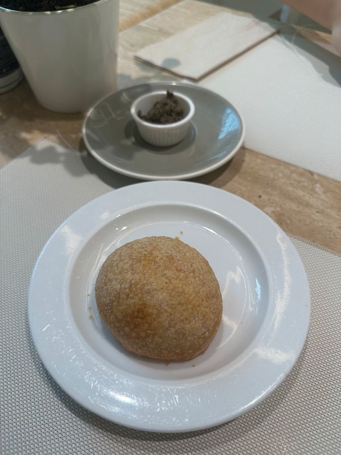 뒤이어 나온 트러플 페이스트를 곁들인 빵은 우리의 미각을 완전히 사로잡았습니다. 겉은 바삭하고 속은 촉촉한 갓 구운 빵은 향긋한 트러플 페이스트와 환상의 궁합을 자랑했습니다. 한 조각을 떼어 페이스트를 듬뿍 올려 입에 넣자, 트러플 특유의 흙내음과 고소함이 입안 가득 퍼지며 감탄사를 자아냈습니다. 이는 마시모스가 좋은 재료로 정성껏 요리한다는 것을 여실히 증명하는 애피타이저였습니다.