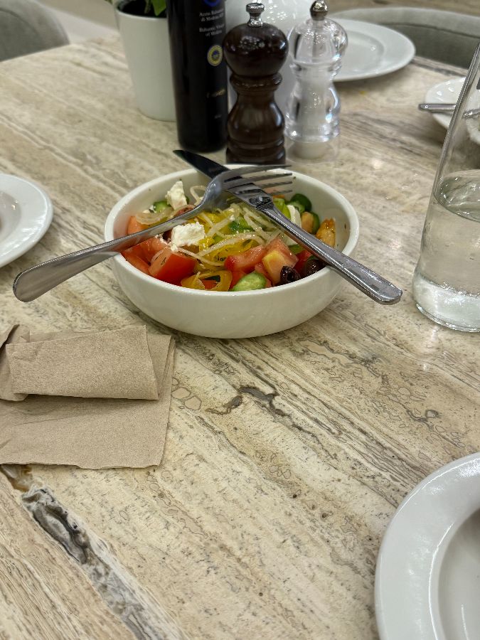 메뉴는 꽤 다양해서 선택의 폭이 넓었지만, 어떤 것을 골라도 후회하지 않을 것이라는 확신이 들었습니다. 물론 모든 취향을 만족시킬 수는 없겠지만, 마시모스는 각자의 입맛에 맞는 요리를 찾을 수 있도록 충분한 옵션을 제공하고 있었습니다. 신선한 재료들이 조화롭게 담긴 샐러드도 우리의 눈을 즐겁게 해주었습니다. 상큼한 드레싱과 아삭한 채소, 그리고 치즈의 조화가 미각을 깨웠습니다.