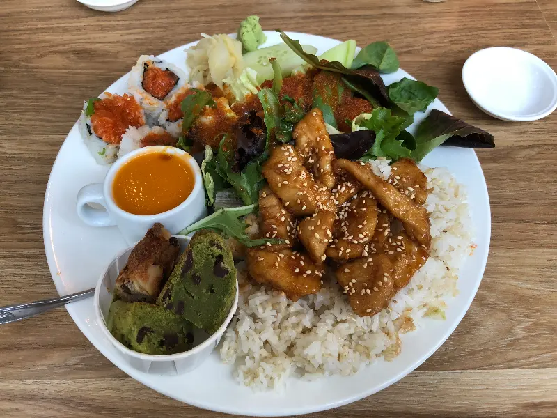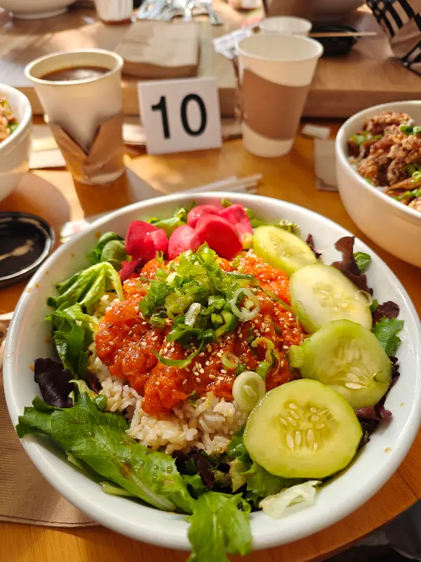 유코 키친의 메뉴는 신선한 재료를 사용하여 정성껏 만든 샐러드와 일본 가정식을 중심으로 구성되어 있습니다. 샐러드 플레이트는 보기에도 아름답지만, 맛과 영양 또한 놓치지 않았습니다. 다양한 종류의 채소와 과일, 그리고 단백질 토핑이 조화롭게 어우러져 건강한 한 끼 식사를 제공합니다.