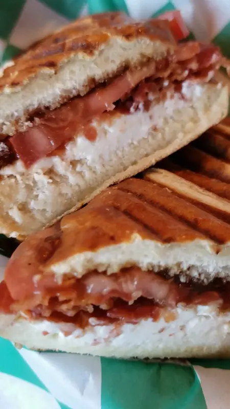 음료와 함께 간단한 식사를 즐기기로 했다. 메뉴를 살펴보니 샌드위치와 파니니 종류가 다양하게 준비되어 있었다. 우리는 염소 치즈가 들어간 파니니와 햄 샌드위치를 주문했다. 잠시 후, 따뜻하게 구워진 파니니와 샌드위치가 테이블에 놓였다.