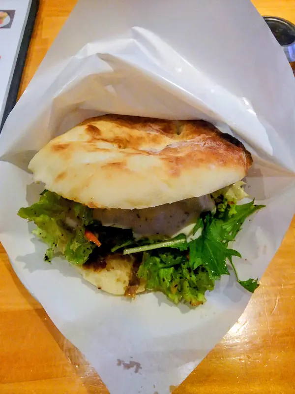 케밥 샌드는 흔히 피타 빵에 양배추와 고기를 넣어 만들지만, 이곳은 조금 달랐습니다. 빵은 더 두툼하고, 양상추, 양파, 토마토 등 신선한 야채에 새콤한 드레싱을 곁들여 샐러드처럼 즐길 수 있었습니다. 마치 독일에서 먹었던 케밥 샌드와 비슷하면서도, 어딘가 모르게 원조의 느낌이 풍기는 특별한 맛이었죠.