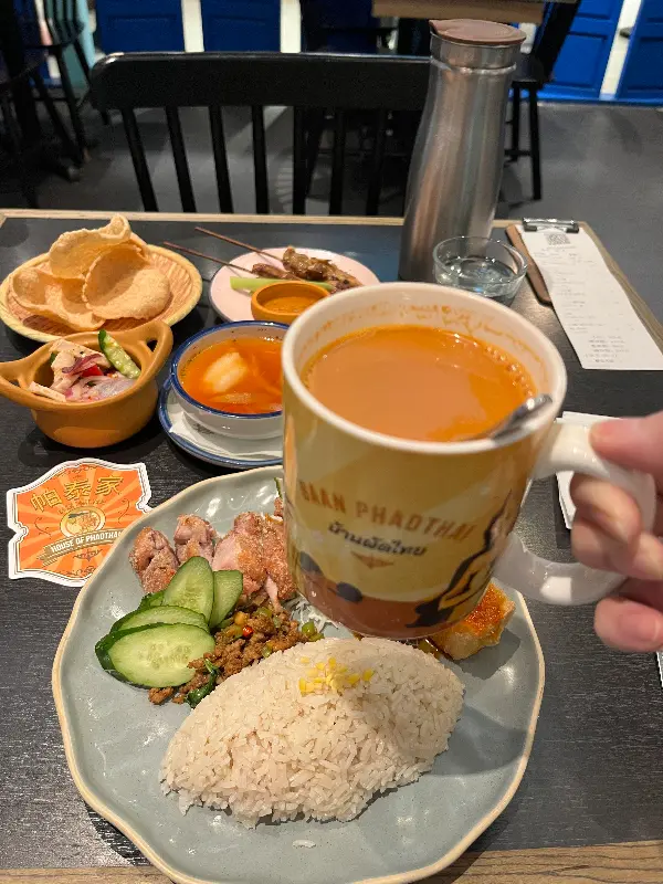 발걸음을 옮길 때마다 설렘이 가득 차오르는 곳, 신콩 미츠코시 A8. 오늘, 그곳에서 특별한 미식 여행을 떠나보려 합니다. 반 팟타이(Baan Phadthai)는 이미 많은 이들의 입소문을 탄 유명한 태국 음식점입니다. 평소 태국 음식을 즐겨 먹는 저에게도 이곳은 늘 궁금증을 자아내는 곳이었죠. 휴일에는 긴 줄이 늘어서 있다는 이야기에 망설였지만, 오늘은 운 좋게도 바로 자리에 앉을 수 있었습니다. 문을 열고 들어서는 순간, 은은하게 풍겨오는 향신료 향이 코끝을 간지럽히며 기대감을 더욱 고조시켰습니다.
