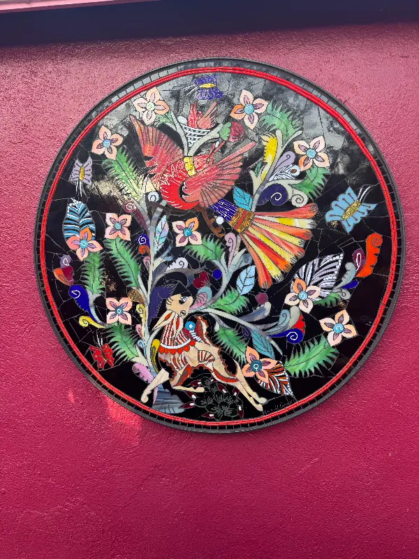 카시타 델 캄포의 내부는 생동감 넘치는 색감과 멕시코 특유의 분위기로 가득합니다. 화려한 색상의 벽, 멕시코 전통 장식품, 곳곳에 놓인 식물들은 마치 멕시코에 와 있는 듯한 착각을 불러일으킵니다. 가게 한가운데에는 커다란 나무가 자라고 있어 더욱 특별한 분위기를 연출합니다. 마치 1960년대 사이키델릭한 숲속에서 식사를 하는 듯한 독특한 경험을 선사합니다.
