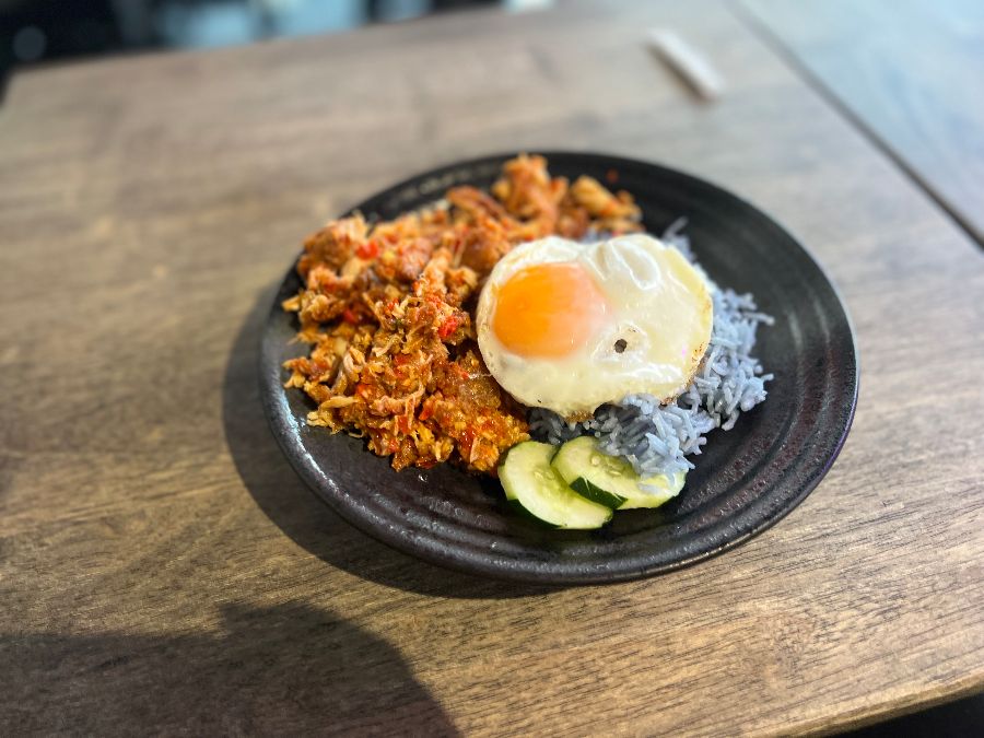 팡코 커피의 시그니처 메뉴 중 하나는 단연 스매시드 치킨 라이스입니다. 밥알 하나하나에 스며든 은은한 파란색이 시각적인 즐거움을 더하고, 그 위에 노릇하게 튀겨진 닭고기와 완벽한 반숙의 계란 프라이가 올라가 있습니다. 여기에 신선한 오이 슬라이스가 아삭함을 더하며, 붉은빛의 매콤한 소스가 플레이트의 한쪽을 강렬하게 장식하고 있습니다. 이 메뉴는 단순한 음식을 넘어선 하나의 예술 작품처럼 보입니다. 한 손님이 “한국 분들 좋아하실 매운맛”이라고 표현했듯, 팡코 커피의 매운맛은 한국인의 입맛에 완벽하게 맞춰져 있습니다.
