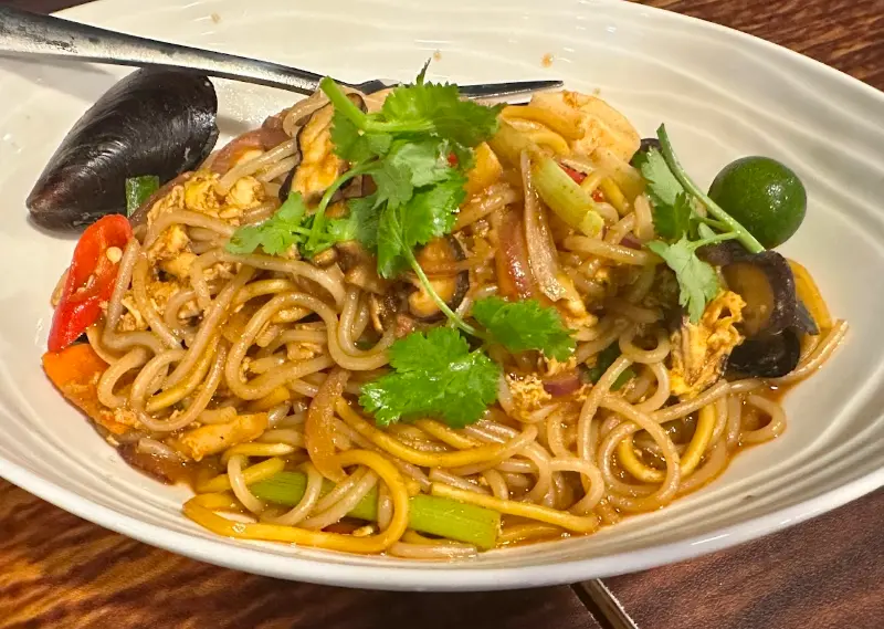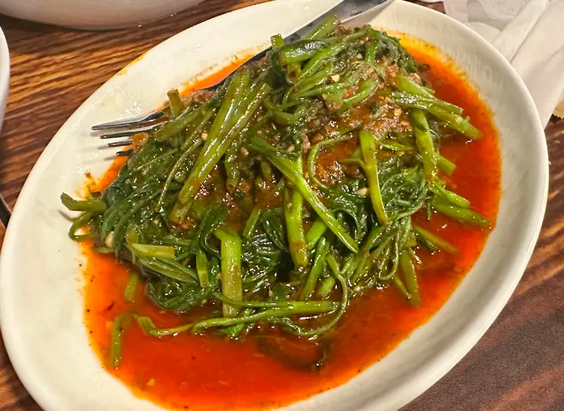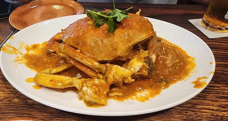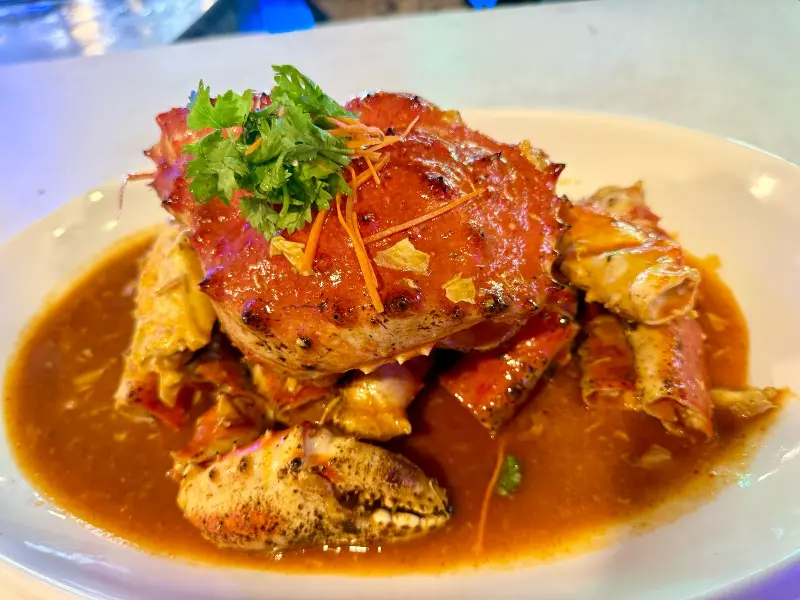 드디어 주문한 요리들이 하나둘씩 테이블에 놓이기 시작했다. 스프링 롤은 바삭하고 신선했지만, 안에 야채가 조금 부족하다는 아쉬움이 남았다. 하지만 이내 등장한 칠리 크랩의 압도적인 비주얼에 모든 아쉬움은 잊혀졌다.
