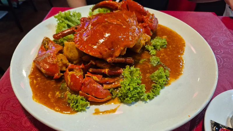 붉은 칠리 소스가 듬뿍 덮인 칠리 크랩은 사진으로 보던 것보다 훨씬 웅장했다. 윤기가 흐르는 게 껍데기와 큼지막한 집게발은 보는 것만으로도 식욕을 자극했다. 드디어 칠리 크랩을 맛볼 차례. 게 껍데기를 조심스럽게 열자, 촉촉한 게살이 모습을 드러냈다. 한 입 맛보니, 매콤하면서도 달콤한 칠리 소스가 입안 가득 퍼져 나갔다. 신선한 게살은 부드럽고 탱탱했으며, 칠리 소스와 환상적인 조화를 이루었다.