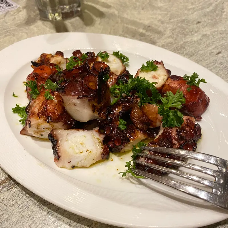 신선한 재료 본연의 맛이 살아있는 구운 문어 요리. 겉은 살짝 그을려져 쫄깃하고, 속은 촉촉한 식감이 일품입니다.