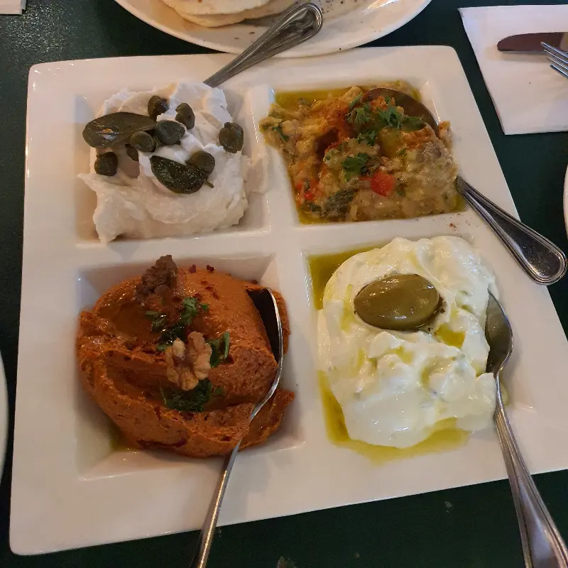다채로운 색감과 신선한 재료가 돋보이는 그리스식 딥. 빵이나 채소와 함께 곁들여 먹으면 더욱 맛있습니다.