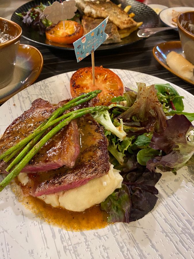 특히 인상 깊었던 것은 팬에 구운 농어와 바비큐 치킨 퀘사디아였습니다. 신선한 농어는 겉은 바삭하고 속은 촉촉하게 구워져 입안 가득 고소함이 퍼졌고, 퀘사디아는 풍부한 바비큐 치킨 필링과 치즈의 조화가 일품이었습니다. 메인 요리와 함께 제공된 신선한 샐러드와 매쉬드 포테이토는 접시의 균형을 완벽하게 맞춰주었습니다. 크리스마스 시즌에 방문했을 때는 비프 스튜를 곁들인 리조또도 맛볼 수 있었는데, 부드러운 소고기와 쫀득한 리조또의 조화는 딸아이의 입맛마저 사로잡을 정도로 훌륭했습니다.