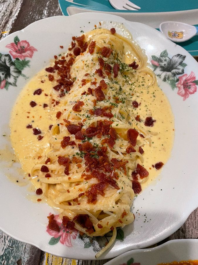 파스타 역시 빠질 수 없는 메뉴였습니다. 특히 부드러운 크림 소스가 듬뿍 올라간 파스타는 짭조름한 베이컨 칩과 고소한 치즈 가루가 어우러져 한 입 한 입이 즐거웠습니다. 버섯 수프와 호박 수프는 직접 만든 듯 진하고 깊은 맛이 났습니다. 따뜻한 수프 한 모금은 아침의 쌀쌀함을 녹여주기에 충분했고, 갓 구운 듯 따뜻한 빵과 함께 곁들이니 그 맛이 더욱 훌륭했습니다.