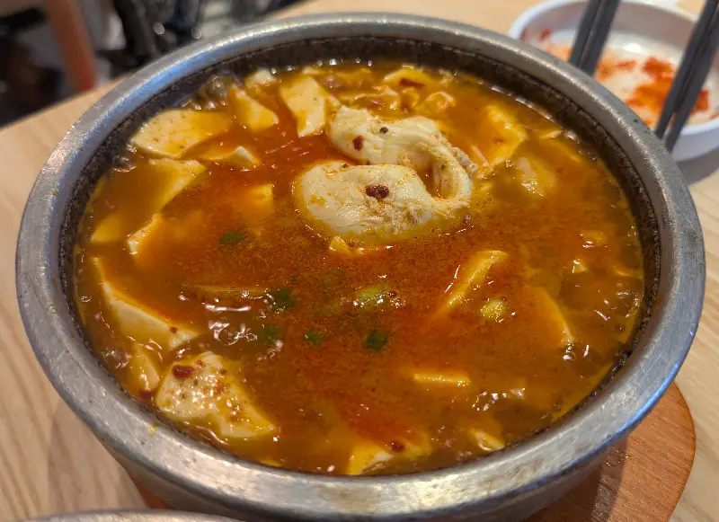 매콤한 오징어탕은 정말 기대 이상의 맛이었습니다. 뚝배기에 담겨 나온 오징어탕은 보기만 해도 얼큰해 보였습니다. 국물을 한 입 떠먹으니, 칼칼하면서도 시원한 맛이 입 안 가득 퍼졌습니다. 오징어도 쫄깃쫄깃하고, 두부도 부드러워서 정말 맛있게 먹었습니다. 특히 밥과 함께 먹으니, 밥도둑이 따로 없었습니다.