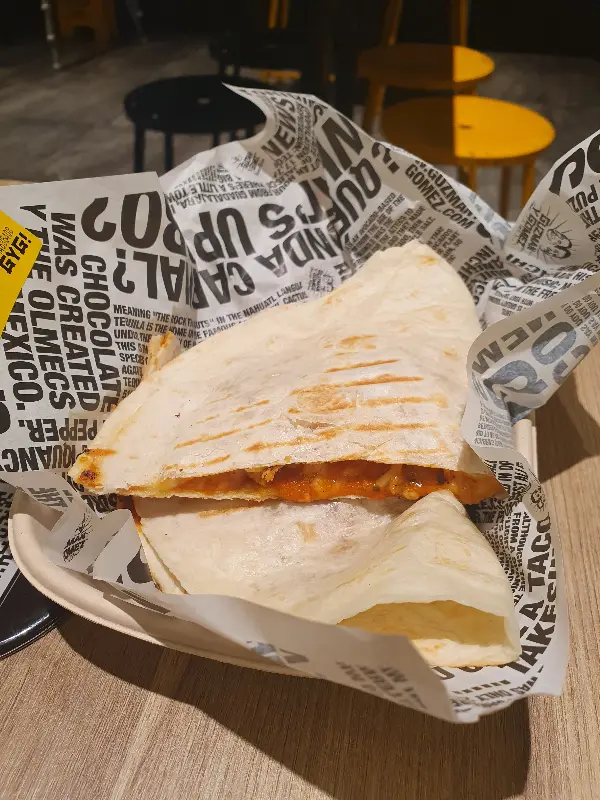 가장 먼저 손이 간 것은 소고기 부리또였다. 따뜻하고 부드러운 또띠아 안에 꽉 찬 소고기와 신선한 야채, 그리고 매콤한 소스가 완벽한 조화를 이루었다. 한 입 베어 물자 입안 가득 퍼지는 풍미는 그야말로 황홀경이었다. 이어서 맛본 버터 치킨 퀘사디아는 부드러운 닭고기와 고소한 치즈의 조합이 일품이었다. 특히, 겉은 바삭하고 속은 촉촉한 퀘사디아의 식감이 훌륭했다.