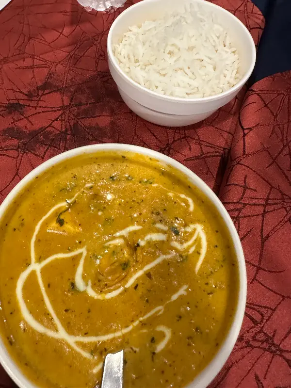 흰 쌀밥은 인도 커리와 환상의 궁합을 자랑한다. 커리의 풍부한 향과 매콤한 맛을 부드럽게 감싸주어 더욱 조화로운 맛을 느낄 수 있다.