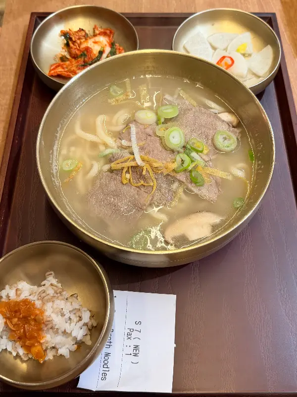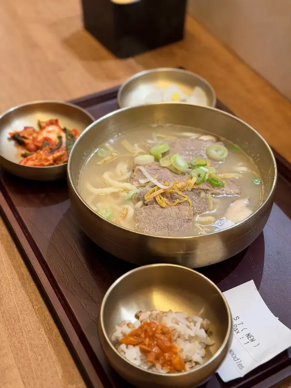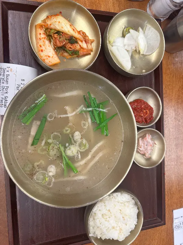 서울제면소의 또 다른 인기 메뉴인 부산 돼지국밥. 하지만 일부 방문객들은 내용물이 다소 부족하다는 의견을 제시했다. 뽀얀 국물과 푸짐한 고기, 그리고 따뜻한 밥 한 공기가 어우러진 돼지국밥은 추운 날씨에 언 몸을 녹여주기에 충분하지만, 조금 더 풍성한 내용물로 만족도를 높일 수 있다면 더욱 좋을 것 같다. 다음 방문에는 꼭 돼지국밥을 맛보고 개선된 점을 확인해보고 싶다.