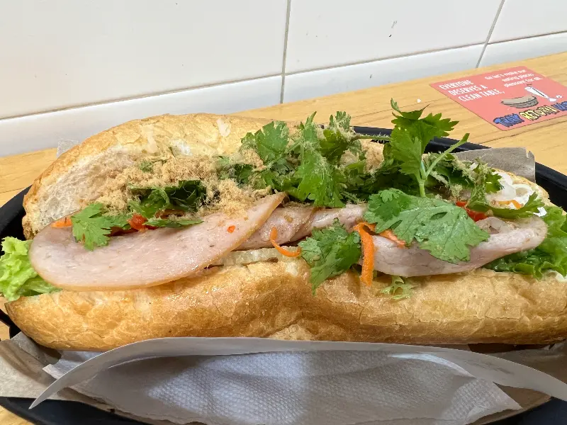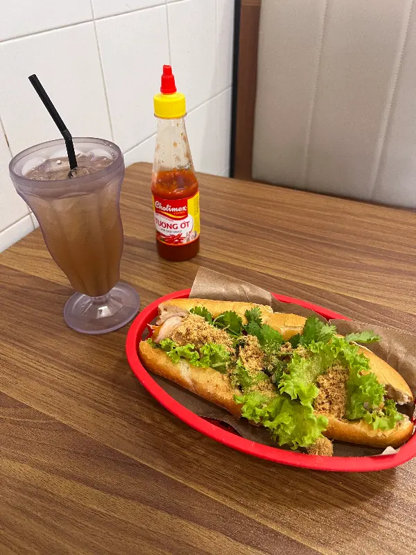 드디어 기다리고 기다리던 반미가 나왔다. 바삭한 바게트 빵 속에 푸짐하게 들어간 속 재료들이 눈을 즐겁게 했다. 싱싱한 야채와 독특한 풍미의 고기가 어우러져 완벽한 조화를 이루었다. 한 입 베어 무는 순간, 입안 가득 퍼지는 풍미에 감탄했다. 특히 바게트의 바삭함은 잊을 수 없는 식감을 선사했다.