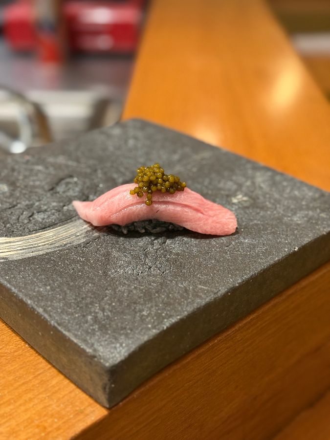 시키 오마카세의 하이라이트 중 하나는 바로 와규 우니 핸드롤입니다. 입에서 살살 녹는 와규와 신선한 우니의 조화는 그야말로 환상적입니다. 부드러운 와규의 육즙과 우니의 깊은 바다 향이 어우러져 오감을 만족시키는 경험을 선사합니다. 여기에 캐비어까지 더해진 와규 초밥은 럭셔리함의 극치를 보여줍니다.