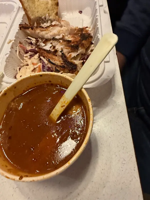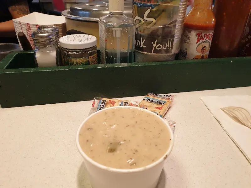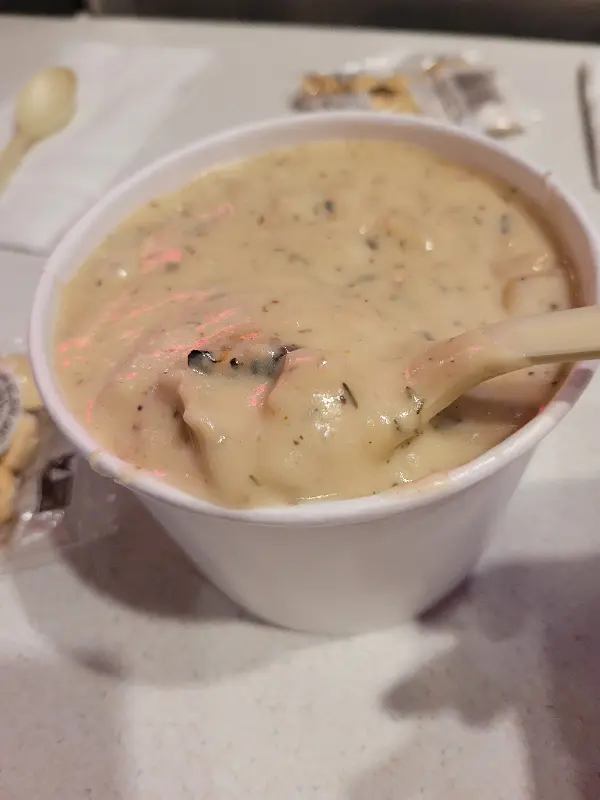 오후 2시 30분에 방문했을 때, 예상대로 줄이 길게 늘어서 있었습니다. 하지만 직원들의 빠른 응대 덕분에 오래 기다리지 않고 주문할 수 있었습니다. 작은 사이즈의 클램 차우더와 블랙큰드 연어 샌드위치를 주문했는데, 세금 포함 32달러에 팁까지 더하니 적지 않은 금액이었습니다. 하지만 맛있는 음식과 친절한 서비스는 충분히 그만한 가치가 있었습니다.