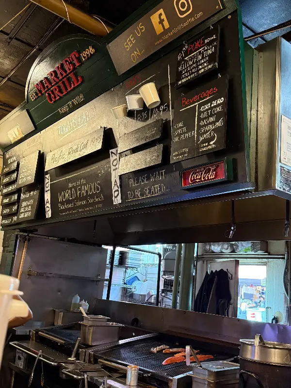 파이크 플레이스 마켓의 활기 넘치는 분위기 속에서 유독 시선을 사로잡는 곳이 있습니다. 바로 ‘마켓 그릴(Market Grill)’입니다. 작고 아담한 공간이지만, 그 안에서 펼쳐지는 맛의 향연은 결코 작지 않습니다. 싱싱한 해산물을 맛보기 위해 설레는 마음으로 마켓 그릴을 찾아 떠나봅니다.
