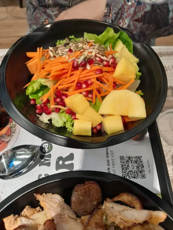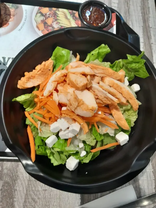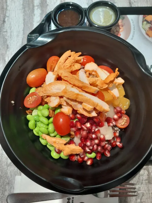 샐러드바 콘셉트이기 때문에 대부분의 음식이 차갑게 제공됩니다. 현미밥, 마늘 새우, 미트볼을 제외한 메뉴들은 차가운 상태로 제공되는데, 이는 샐러드라는 음식의 특성상 어쩔 수 없는 부분입니다. 하지만 차가운 닭고기에 익숙하지 않은 사람들에게는 다소 아쉬울 수 있습니다. 이 부분을 보완하기 위해 따뜻한 메뉴의 다양성을 늘리거나, 닭고기를 따뜻하게 제공하는 방법을 고려해볼 수 있습니다.