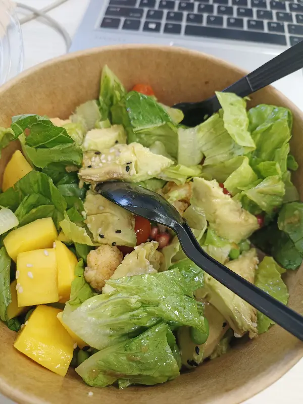 한 고객은 평소 즐겨 먹던 그린 카레 포케볼을 주문하려 했지만, 아쉽게도 그린 카레 소스가 품절되어 다른 소스를 추천받지 못했다고 합니다. 소스는 샐러드의 맛을 좌우하는 중요한 요소이므로, 다양한 소스를 미리 준비해두고 고객에게 적극적으로 추천하는 서비스가 필요해 보입니다.
