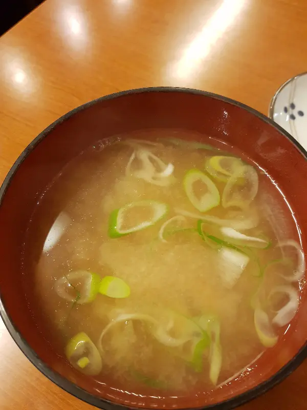따뜻한 미소시루 한 모금, 카이센동의 풍미를 더욱 깊게 만들어준다.