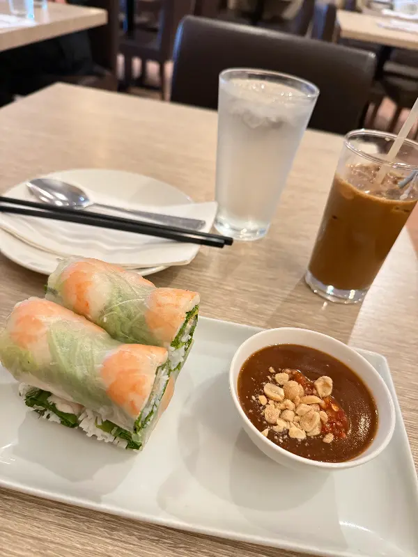 하이옌에서는 신선한 재료로 만든 스프링롤도 빼놓을 수 없습니다. 얇고 투명한 라이스페이퍼 안에 싱싱한 야채와 새우, 쌀국수가 가득 들어 있었습니다. 땅콩 소스에 찍어 먹으니 고소하면서도 상큼한 맛이 입안 가득 퍼졌습니다. 특히, 신선한 야채의 아삭한 식감은 입맛을 돋우는 데 최고였습니다.