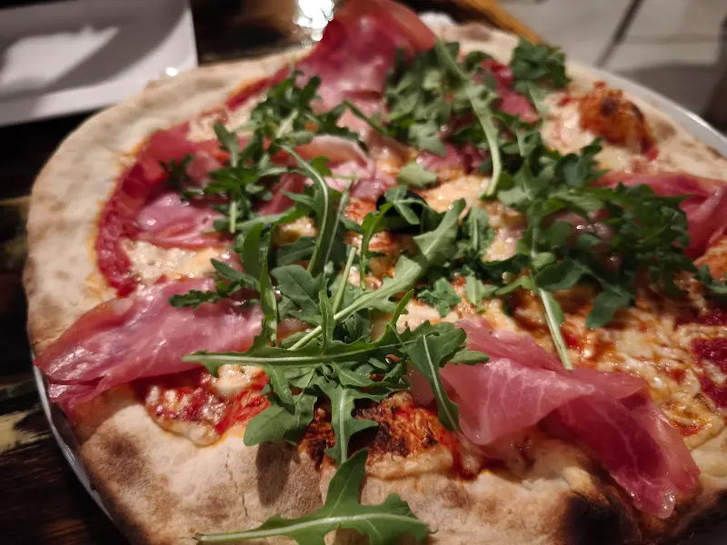 피자 또한 이곳의 인기 메뉴 중 하나입니다. 특히 얇은 도우는 바삭한 식감을 선사하며, 다양한 토핑과의 조화가 훌륭합니다. 생햄 피자를 주문했는데, 짭짤한 생햄과 신선한 채소가 어우러져 환상적인 맛을 자랑했습니다. 피자 도우는 얇고 바삭해서 마치 과자를 먹는 듯한 느낌이었습니다.