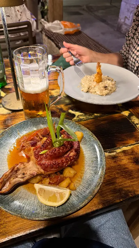 두브로브니크의 다른 레스토랑들과 비교했을 때, 이곳의 가격은 상당히 합리적인 편입니다. 특히 현지 해산물을 사용한 요리들은 신선하고 맛있으면서도 가격 부담이 적어 인기가 많습니다. 트뤼플 파스타, 홍합이 들어간 해물 리조또, 연어 그릴, 생햄 피자 등 다양한 메뉴를 맛볼 수 있다는 점도 매력적입니다. 저는 트뤼플 파스타와 해물 리조또를 주문했습니다.