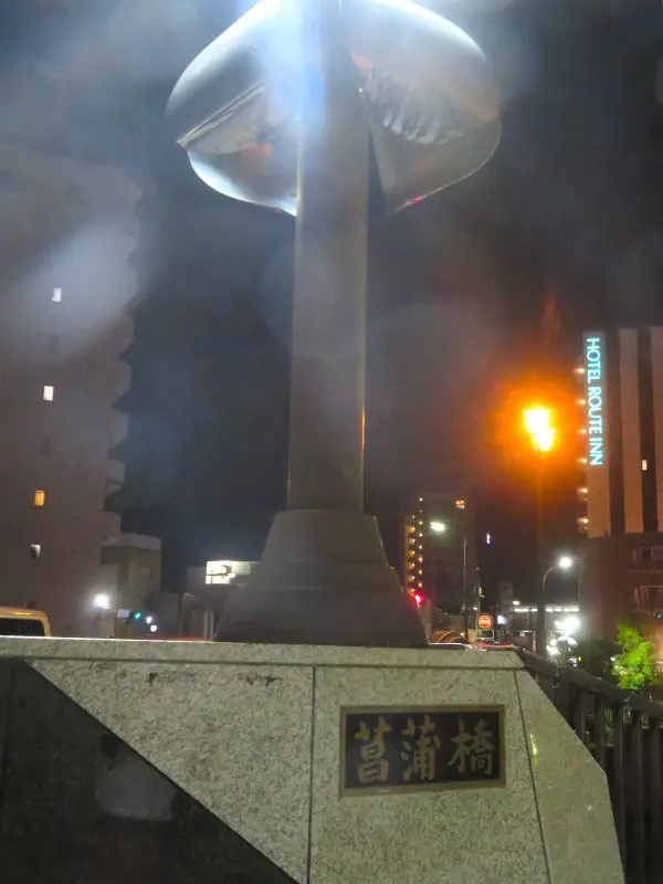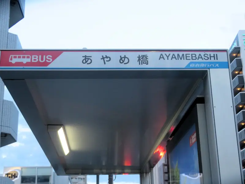 아야메 다리 바로 앞에 위치한 버스 정류장, “아야메바시”.