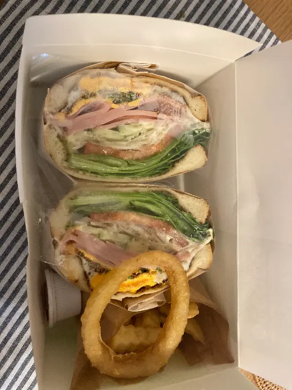 다른 날, 약혼자와 함께 쥬시즈 라보라토리를 다시 찾았다. 이번에는 클럽하우스 샌드위치와 패티멜트 샌드위치를 주문했다. 샌드위치와 함께 감자튀김과 어니언 링이 곁들여 나왔다. 클럽하우스 샌드위치는 신선한 채소와 햄, 치즈가 듬뿍 들어 있어 푸짐한 식감을 자랑했다. 패티멜트 샌드위치는 육즙 가득한 패티와 녹아내리는 치즈의 조화가 훌륭했다.