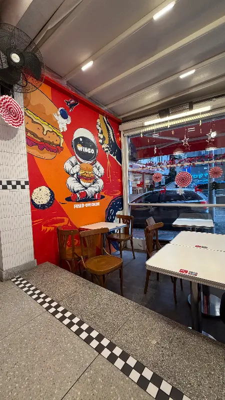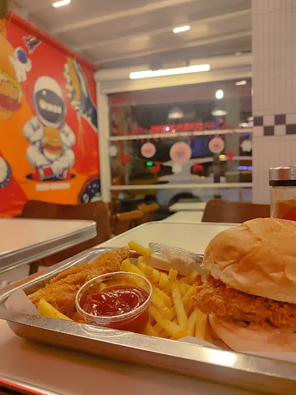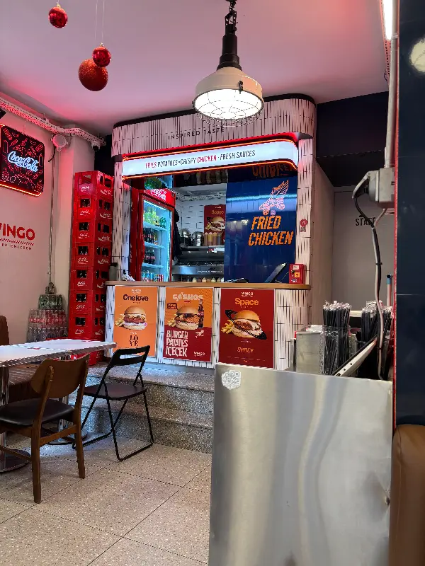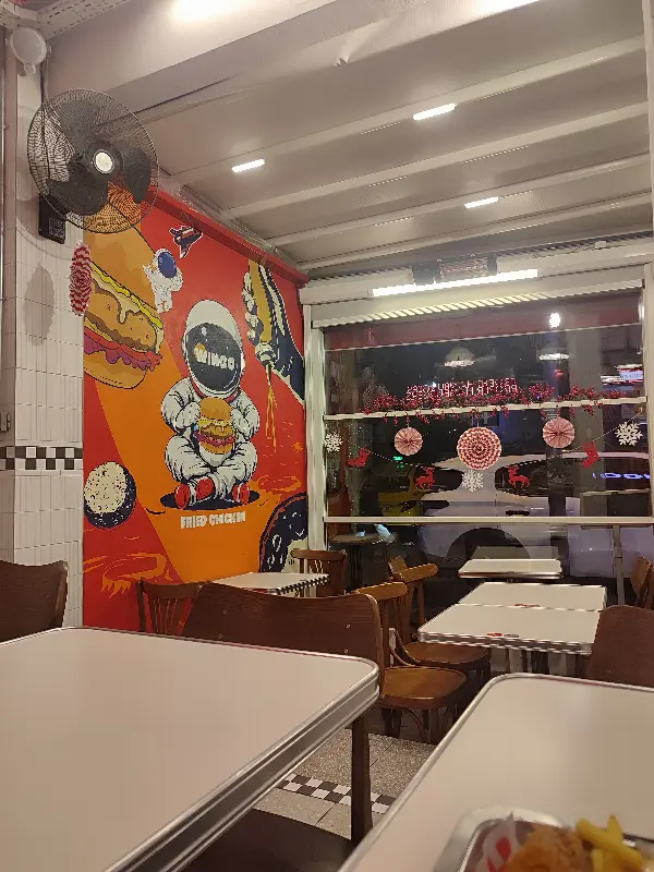 어느 날, 아카레틀러 거리를 걷다가 우연히 발견한 윙고 프라이드 치킨. 평소 치킨버거를 즐겨 먹는 나에게 윙고 프라이드 치킨은 마치 운명처럼 다가왔다. 문을 열고 들어서는 순간, 깨끗하고 활기 넘치는 분위기가 나를 사로잡았다. 퀴퀴한 냄새 하나 없이 깔끔하게 정돈된 내부와 친절한 직원들의 미소는 윙고 프라이드 치킨에 대한 나의 첫인상을 긍정적으로 만들어 주었다. 벽면에 그려진 귀여운 우주인 캐릭터는 이곳만의 독특한 개성을 드러내는 듯했다.