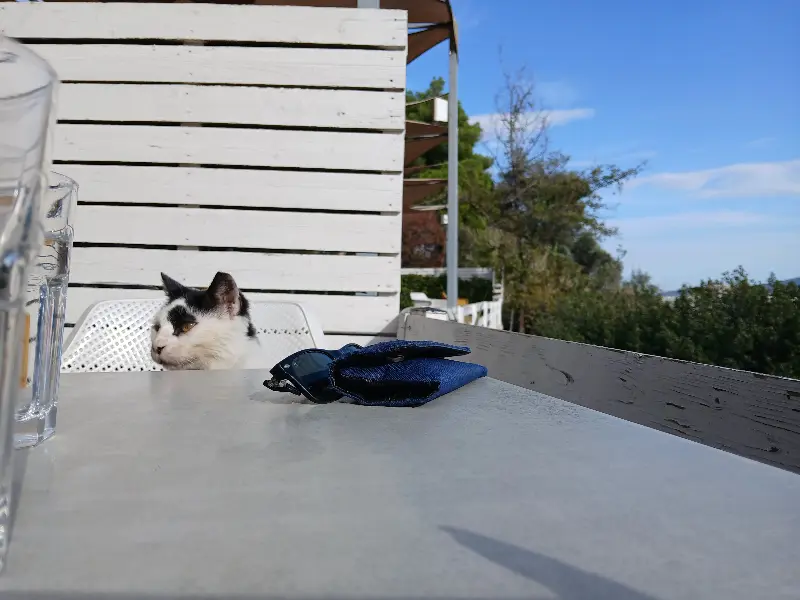 심지어 테이블 옆 의자에 앉아있는 고양이조차도 편안하고 여유로운 분위기를 더했습니다. 다만, 몇몇 후기에서 지적되었듯이, 깨진 물잔이나 재떨이가 눈에 띄는 점은 아쉬웠습니다. 하지만, 전반적으로 직원들의 친절한 서비스와 깨끗한 공간 덕분에, 저는 이곳에서 즐거운 시간을 보낼 수 있었습니다.