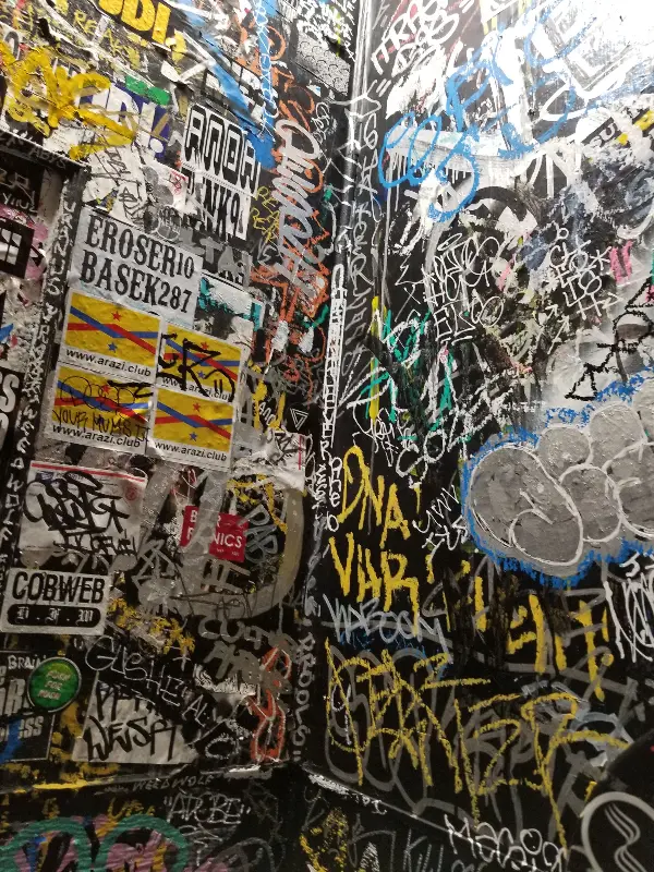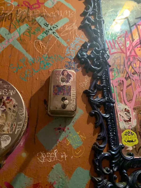 화장실은 이 바의 개성을 가장 잘 드러내는 공간 중 하나였습니다. 벽면 가득 낙서와 스티커로 뒤덮여 있었고, 낡은 거울과 앤티크한 장식들이 독특한 분위기를 자아냈습니다. 누군가에게는 불쾌하게 느껴질 수도 있지만, 저에게는 이 공간의 자유분방함을 상징하는 듯했습니다.