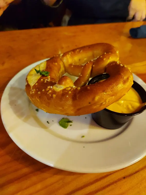 함께 주문한 소프트 프레첼은 따뜻하고 쫄깃했다. 특히 치즈 소스는 정말 환상적이었다. 짭짤하면서도 고소한 치즈 풍미가 프레첼과 완벽하게 어우러졌다. 맥주와 프레첼의 조합은 정말 최고였다!