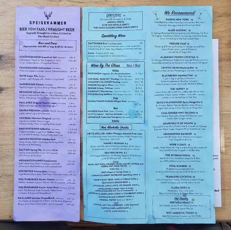 어느덧 12월, 샌프란시스코 만 건너 알라메다 거리는 따뜻한 겨울 분위기로 물들어 있었다. 연말 분위기를 만끽하고 싶어 슈파이제캄머를 찾았다. 문을 열자, 따뜻한 나무 내음과 은은한 조명이 아늑하게 감싸는 공간이 눈에 들어왔다. 마치 독일 작은 마을의 따뜻한 식당에 들어선 듯한 기분이었다.