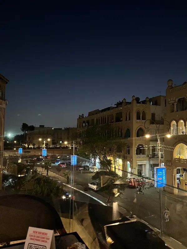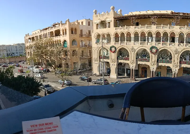 루프탑에 자리를 잡으니 알렉산드리아 시내가 한눈에 들어오는 아름다운 전망이 펼쳐졌다. 탁 트인 하늘과 이국적인 건물들이 어우러져 그림 같은 풍경을 자아냈다. 테이블 간 간격이 다소 좁은 것은 아쉬웠지만, 그만큼 활기 넘치는 분위기를 느낄 수 있었다. 옥상 테이블은 햇살을 가려주는 차양막이 설치되어 있어, 뜨거운 햇볕을 피하면서도 시원한 바람을 즐길 수 있었다.