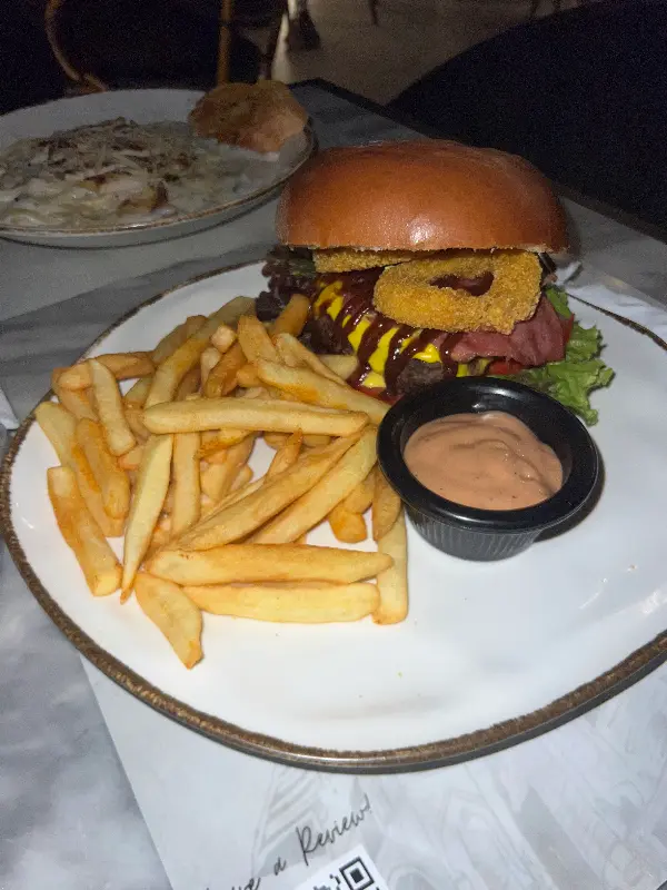 다른 날 방문했을 때는 버거와 파스타를 주문했는데, 이 또한 훌륭한 선택이었다. 버거는 육즙이 풍부하고 패티의 풍미가 살아있었으며, 파스타는 면발이 탱글탱글하고 소스가 깊은 맛을 내서 잊을 수 없는 맛이었다. 특히, 유세프라는 웨이터는 매우 친절하고 세심하게 서비스를 제공해 주어 더욱 만족스러운 식사를 즐길 수 있었다.