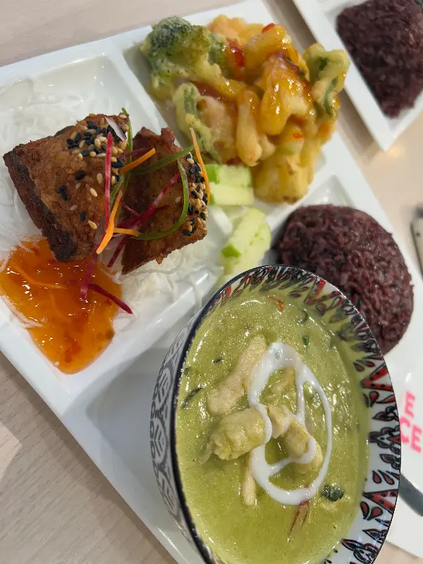 사진 속 이프타르 세트 메뉴는 푸시아의 매력을 단적으로 보여줍니다. 팟타이, 그린 커리, 춘권, 꼬치 등 다양한 메뉴가 한 접시에 담겨 나오는데, 각각의 음식은 신선한 재료와 정통 레시피로 만들어져 풍부한 맛을 자랑합니다. 특히 춘권 위에 뿌려진 채썬 당근과 소스는 시각적인 아름다움을 더하며, 맛과 멋을 동시에 만족시키는 푸시아의 센스를 엿볼 수 있습니다. 한 입 베어 무는 순간, 바삭한 튀김옷과 촉촉한 속 재료의 조화가 입안 가득 퍼져 나갑니다.