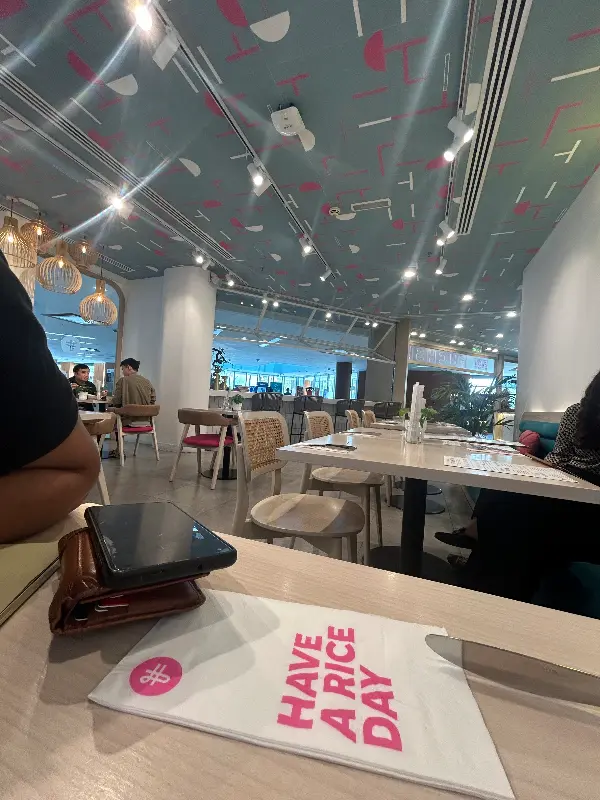 푸시아의 테이블 세팅은 깔끔하고 정갈합니다. 테이블 위에는 냅킨과 함께 “HAVE A RICE DAY”라는 문구가 적힌 종이가 놓여 있는데, 이는 푸시아의 재치 있는 유머 감각을 보여줍니다. 작은 부분까지 신경 쓰는 푸시아의 모습에서, 손님에 대한 배려를 느낄 수 있습니다.