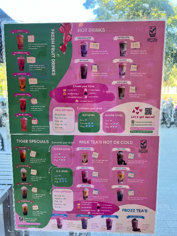 어느 화창한 일요일 오후, 암스테르담의 거리를 걷다가 독특한 간판에 이끌려 한 가게에 들어섰다. 그곳은 바로 버블티와 라면을 함께 즐길 수 있는 특별한 공간, Hey Cha였다. 평소 버블티를 즐겨 마시는 나에게는 그야말로 천국과 같은 곳이었다.