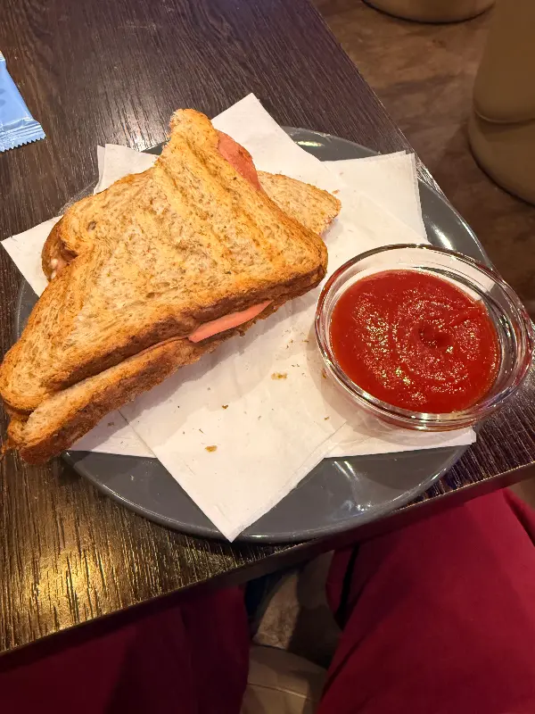 Hash Rossin과 함께 샌드위치도 주문했습니다. 겉은 바삭하고 속은 촉촉한 빵 사이에 신선한 채소와 햄이 듬뿍 들어있었습니다. 특히, 샌드위치와 함께 제공된 토마토 소스는 새콤달콤한 맛으로 입맛을 돋우었습니다.
