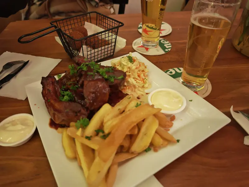 따스한 햇살이 내리쬐는 오후, 테라스에 자리를 잡았습니다. 시원한 맥주 한 잔과 함께 즐기는 여유로운 시간은 여행의 피로를 잊게 해주었습니다. 애피타이저로 주문한 립은 부드러운 식감과 달콤한 소스가 환상적인 조화를 이루었습니다.