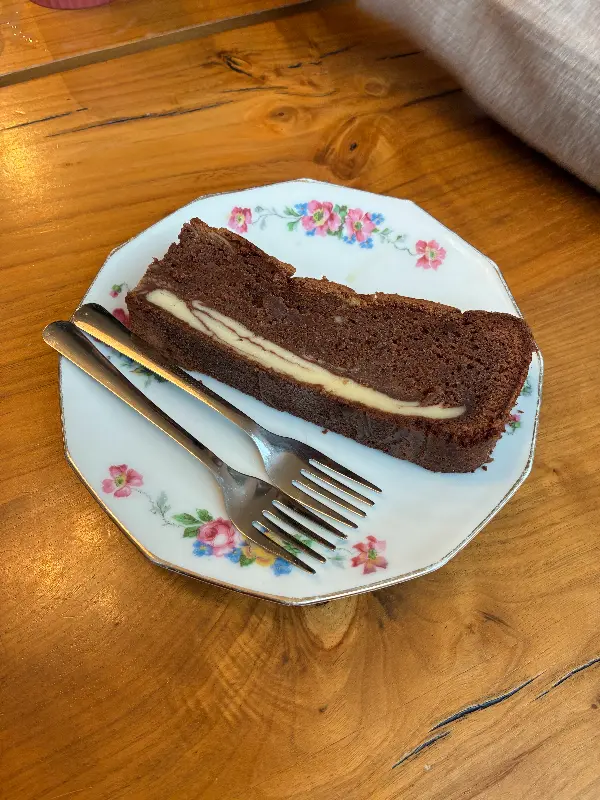 키슈 외에도 마들렌 역시 Chez Rosie에서 빼놓을 수 없는 메뉴입니다. 갓 구워져 따뜻한 마들렌은 입 안에서 부드럽게 녹아내렸습니다. 촉촉하고 버터 향이 은은하게 퍼지는 마들렌은 티타임에 완벽한 동반자였습니다. 헤이즐넛 가나슈 케이크 또한 잊을 수 없는 맛입니다. 달콤하면서도 고소한 헤이즐넛의 풍미가 입안 가득 퍼지는 순간은 황홀경 그 자체였습니다.